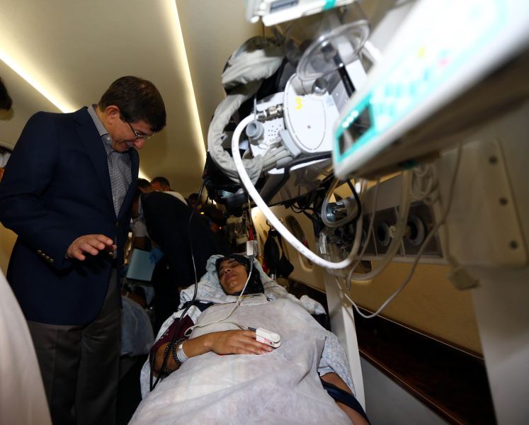 On August 11, 2014, Minister of Foreign Affairs, Mr. Ahmet Davutoğlu, together with Minister of Health, Mr. Mehmet Müezzinoğlu welcomed the Palestinians who were brought to Turkey for treatment with an air ambulance at the Ankara Esenboğa Airport.